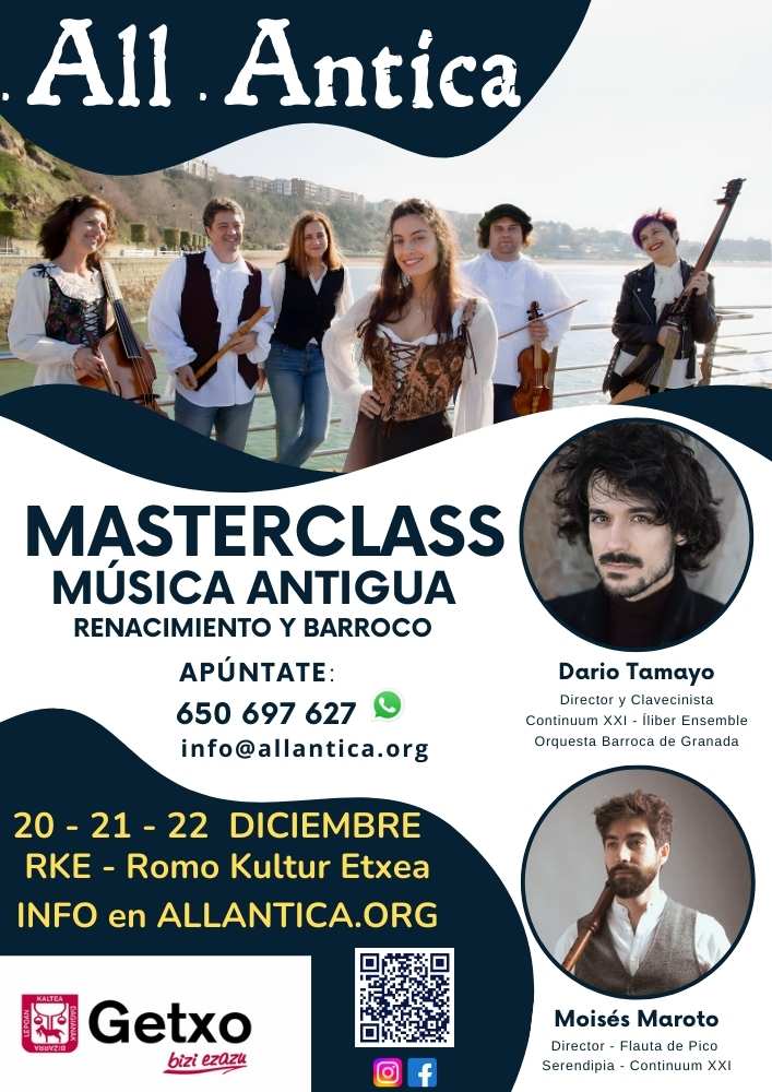 Posibilidad de clases particulares de Clave o Flauta de Pico, impartidas por los maestros, Dario Tamayo y Moisés Maroto, según disponibilidad. Infórmate.